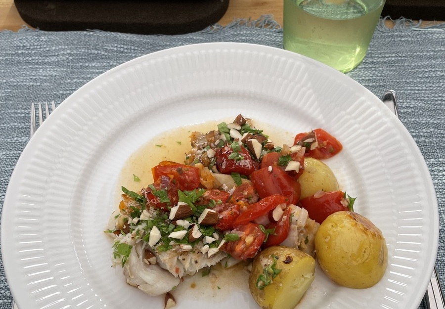 Bagt mørksej med cherrytomater og citron Hak løg 1 løg og 1 fed hvidløg fint. Skyl cherrytomaterne og skær dem i halve. Steg løg og hvidløg i lidt olivenolie på en pande, et par minutter. Tilsæt 2 dl vand, 12-15 cherrytomater, 1 bouillonterning og revet citronskal, fra ½ citron. Bring saucen i kog. Krydr fisken […]