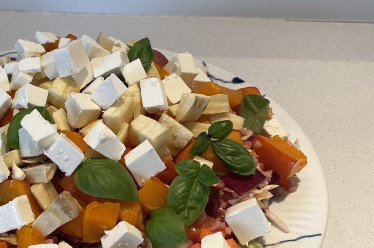 Kom blomkål, løg og ost i mini hakker eller du kan rive det på et groft rivejern